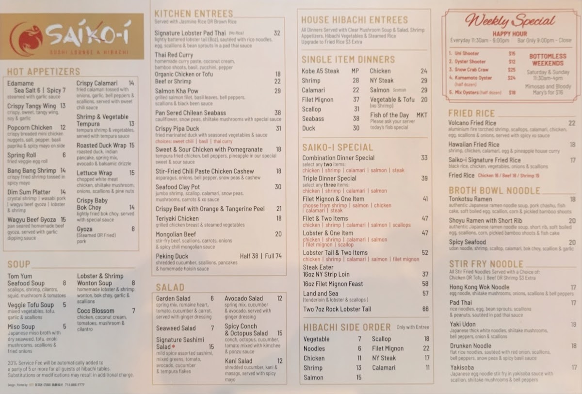 Welcome to Saiko-i Sushi Lounge & Hibachi Boca Raton, where culinary artistry meets vibrant atmosphere. This gem, located at 5970 SW 18th St Suite #E4, Boca Raton, FL, serves an exquisite menu centered around fresh sushi and captivating hibachi dishes.